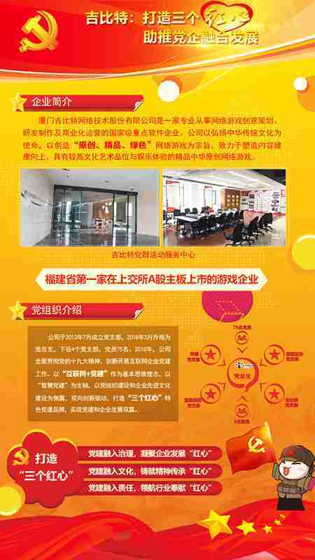 未来公司将全面学习贯彻习近平新时代中国特色社会主义思想和党的十九大精神,,,,持续强化“互联网+党建”的思维理念,,以“智慧党建”为主轴,,,,以党组织建设和企业先进文化建设为侧翼,,,,双向创新驱动,,引领有信仰、、有情怀、、有价值的新时代游戏研发运营,,,在不断发展壮大的同时,,,,成为行业的“红色标杆”,,实现党建和企业发展双赢。。